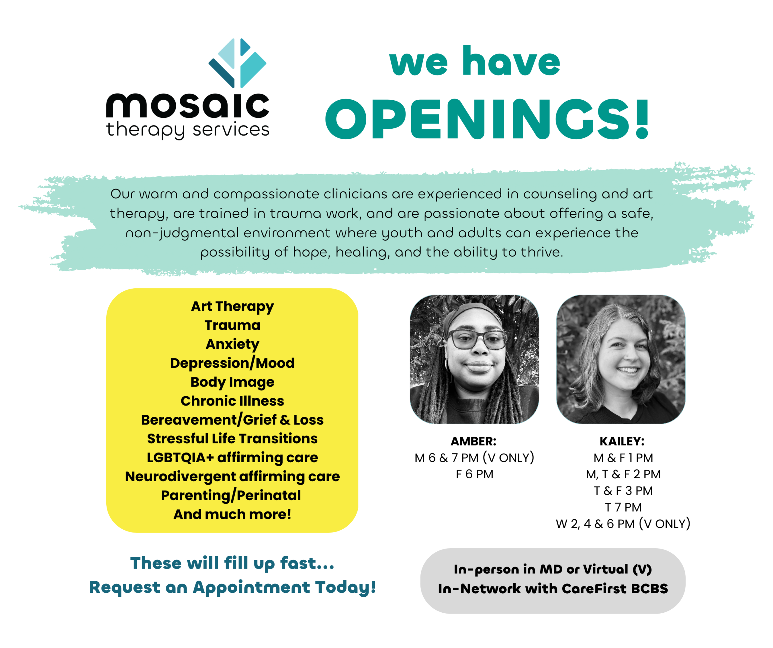 Our warm and compassionate clinicians are experienced in counseling and art therapy, trained in trauma work, and are dedicated to offering a safe and non-judgmental environment where youth and adults can experience the possibility of hope, healing and the ability to thrive.